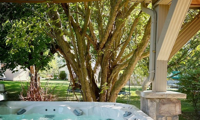 This Michigan Home offers a “rustic cottage” vibe and boasts 4 inviting bedrooms, including 2 king beds, 1 twin bed, and 1 queen bed. With amenities like a hot tub, pool, cabana patio, WiFi, heating, and a fitness room, guests can enjoy a pleasant and tranquil stay. The property also offers a cozy living room and additional sleeping space. We look forward to welcoming you to our place.