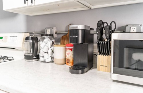 ✓ Start your day off with a steaming cup of joe made from the coffee maker before taking a leisurely stroll through Columbus Park (~10-minute walk).