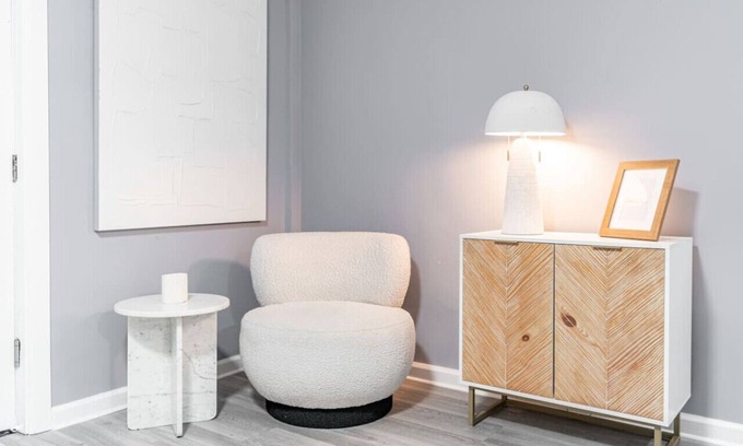 The inside features a fresh appearance, complete with newly refurbished elements and chic amenities designed to ensure your comfort and homely experience. From stylish wall decor to plush seating, a lamp to illuminate the space, and a high-definition television, every detail is tailored to make you feel right at home.