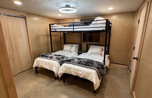 Welcome to our 2 story modern cabin, newly built on 5 wooded acres. Our cabin backs up to a mountain, great for outdoor activities. Hyner View, Hyner state park, Bloody skillet, Sproul Run are all in close vicinity. Even ATV trails, and hundreds of miles of hiking trails, are all only a short distance away. The living room has cathedral ceilings with oversized windows, great for star gazing. Includes a couch large enough to sleep on. On the 1st floor bedroom, it contains 3 twin bunk beds. The 2nd floor bedroom contains a queen bed, along with a loft containing a futon bed. There are 2 full bathrooms total. The kitchen comes fully equipped with all pots, pans, dishes, utensils with a microwave, air fryer, oven, Keurig, toaster, all included. There is a rear patio under a roof for all your outdoor activities. Wifi is available at the cabin (with access to YouTube, Netflix, etc), with 3 large screen TV’s. There is a washer and dryer on the 1st floor. Outside the cabin, you will find a BBQ grill, fire pit, with chairs and an outdoor couch for s’mores galore. Firewood is supplied for the firepit. Home is septic/well so please use with care. Extra blowup mattress is in the 2nd story bedroom! Home has radiant floor heating as well as a propane fireplace on the 1st floor and a A/C mini split on the 2nd floor. As well as ceiling fans in every room. Come create new memories while you hunt, fish, hike, ATV. EV CHARGER AVAILABLE, MUST BRING OWN CABLE. If you love the outdoors, this is the cabin for you!