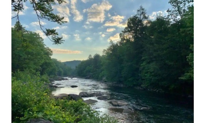 We have a very small yard on the side of the cabin, it is not suitable for "playing" however, there is a community park that is a 2 minute walk from the cabin. The community park has new swings, a slide, and a grass space for children to play. Right across the street from the park is where you have direct access to Middle Fork River. This is where the cover photo was taken. There are stairs that will take you down to the river bank to swim, float, kayak, or fish. The river feeds directly into Audra State Park and is a perfect "pick up" spot if you choose to tube down the river.