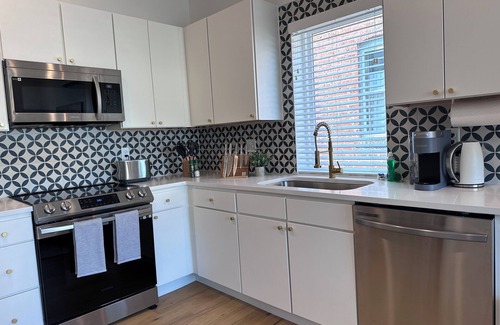 Brand new condo nestled at the base of Lookout Mountain in downtown Chattanooga's vibrant St. Elmo Community. Convenient to the riverfront, Ruby Falls, and Rock City. Walking distance to many restaurants, grocery stores, and coffee shops. Rooftop deck, modern amenities, cozy beds, and scenic views. 10 miles of paved Riverwalk Greenway across the street. 40+ miles of mountain hiking or biking trails to explore just steps away. Book now for an unforgettable stay, where natural beauty and urban excitement seamlessly blend.