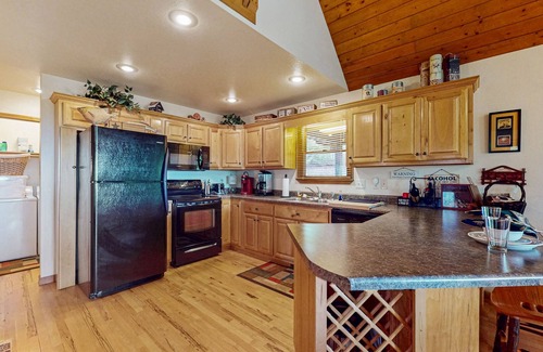 Unwind on the covered decks or screened-in porch with your morning coffee, keeping an eye out for local wildlife. The spacious great room invites you to relax by the cozy stone gas fireplace, enjoy family movie nights on the flat-screen TV, or challenge each other to a game of pool. The fully equipped kitchen makes meal preparation a breeze, whether you choose to dine indoors or fire up the gas grill outside while soaking in the panoramic views.