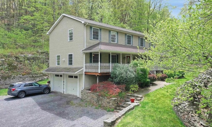 The Lily Pad is a cozy, spacious mountain getaway tucked away in the trees - ideal for those craving nature, serenity, or exploration. Conveniently located 10 minutes from the charming town of New Paltz, take advantage of all that surrounds you. Hike in Minnewaska, climb in Mohonk Preserve, visit local farms and wineries, relax at the pad by a cozy fire, or play a game of pool in our in-home Irish pub. Bask in the beautiful mountains of the Hudson Valley and let your worries melt away.