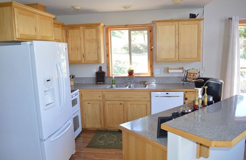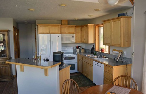 Nestled in a quiet little valley, meadow homes dot the area. The Chalet has a clear view of the surrounding mountains from the open living areas many windows, sitting on the front deck or while soaking in the hot tub. Enjoy the peace and tranquility of our valley or venture out to play, depending on the season with hiking, boating, fishing, hot springs, or winter sports all a relatively short drive away.