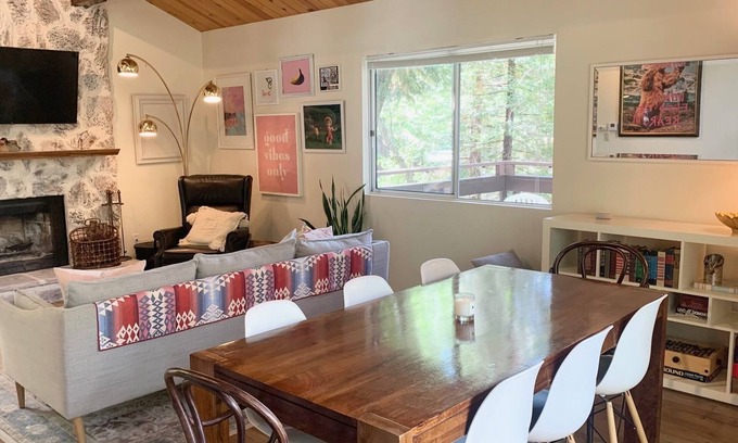 Welcome to our charming 2-bedroom cabin nestled in the San Bernardino mountains, just a stone's throw away from the picturesque Lake Gregory, Lake Arrowhead, and the popular Big Bear Lake. This delightful cabin is perfect for families or groups of up to 6 guests, seeking a relaxing getaway amidst nature's beauty and endless fall and winter activities.