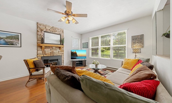 With one bedroom conveniently located on the main floor and three more upstairs, our townhome offers ample space for families or groups of friends seeking a cozy retreat. Kids and adults alike will delight in our 64-in-1 video game console, featuring beloved classics like Pac Man, Donkey Kong, and Galaga, ensuring endless entertainment for all ages.