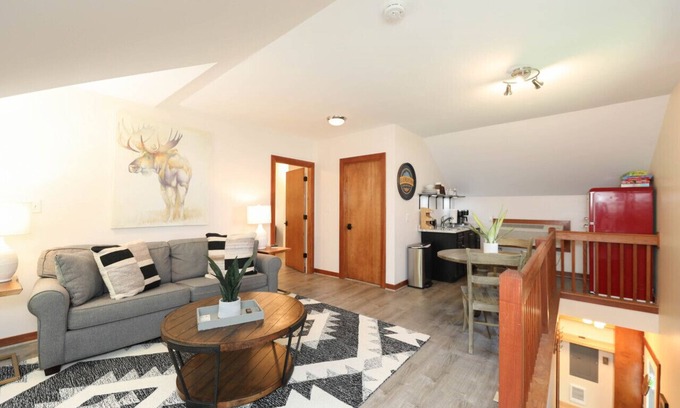 Step inside our carriage house that carefully marries traditional mountain charm with modern conveniences. The heart of the home is our living room, featuring two plush chairs for Cozy conversations, a queen-sized sleeper sofa for extra resting space and a 55" smart TV for your entertainment needs. As you flow from the living space, you'll find our fully-equipped kitchenette, thoughtfully appointed with a refrigerator/freezer, an air fryer/toaster, and a griddle, perfect for crafting a hearty breakfast before heading out for a day of adventure. The nearby dinette offers the perfect space for enjoying meals and creating lasting memories. Our private bedroom is a haven of its own, featuring a queen bed with a trundle underneath for added comfort. Ample closet and dresser space are available for storage, providing a homely feel. The carriage house also houses a full bathroom located in the living area, ensuring convenience and comfort throughout your stay. Remember, our home is your home during this stay. We cater to both short term explorers or long term seekers of peace and tranquility.
