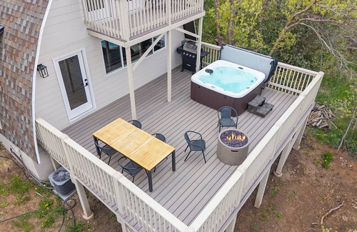 - Main deck w/ Hot Tub, Fire pit, outdoor dining