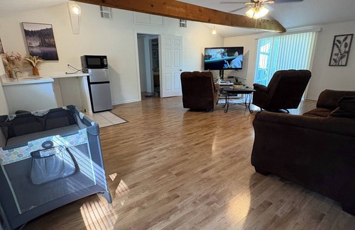 This 3-bedroom house in Coldspring is perfect for your escape. The bedrooms feature a nice queen bed, peaceful 2 twin beds, and a fabulous 2 full size beds. With 2 bathrooms equipped with a hair dryer, shower, and bathtub, guests will feel right at home. Enjoy the additional living spaces with 2 sofa beds and 2 twin beds. **Swimming pool 4 minute walk from house, boat ramp, fishing pier access to lake 8 minute walk from house. 1 key accesses all 3. We’re happy to assist with any questions while you stay at our house.