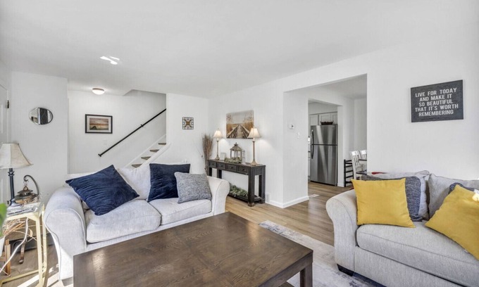 Step inside and find an all-new finish and furnishings. The comfortable living room area includes a large Smart TV. Step into the kitchen where you'll discover large marble countertops, new cabinets and new stainless-steel appliances so you can prepare all your meals. There's a spacious dining area too. Head upstairs to find three bedrooms (one King, one full, and one twin), and a full bathroom. The basement is half finished and includes free laundry facilities and a half bath.