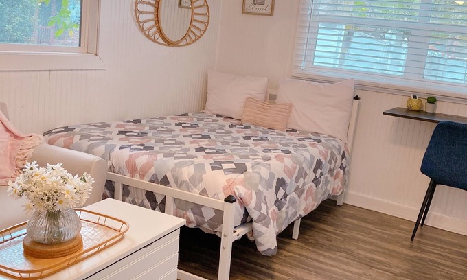 Charming tiny affordable guesthouse has everything from kitchen, closet, dedicated workspace, fast wifi and more. Please note that this guesthouse is