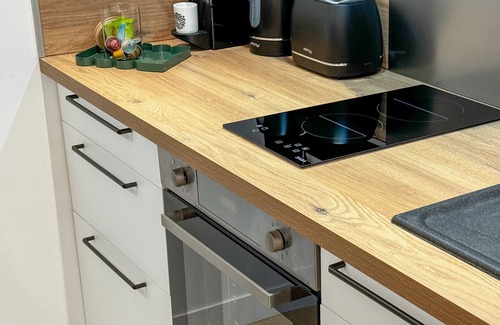 - a kitchen equipped with an induction hob, a multifunction oven, a microwave and a refrigerator
