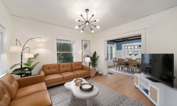 Start your day with a peaceful coffee on the cozy porch, unwind with loved ones in stylish living spaces, and explore nearby sights like Mount Tabor Park and the Oregon Museum. This family-friendly retreat combines comfort and convenience for an unforgettable stay!