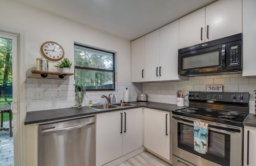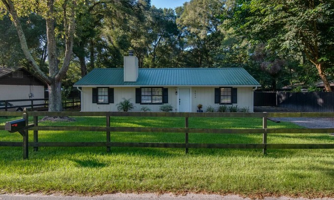 Cozy Ocala cottage with large privacy fenced backyard, fire pit surrounded by adirondack chairs, and a grill making it a perfect place to relax with your friends, and pups! The home is equipped with all essential items to make your getaway stress free. For your safety, the home does have an automatic locking keypad deadbolt, and motion cameras outside only.