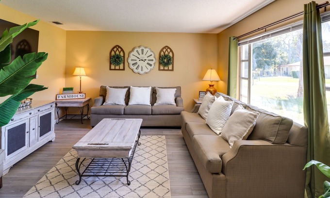 Set your worries aside and escape to this Ocala vacation rental to indulge in a rejuvenating and fun-filled stay! This spacious 3-bedroom, 2-bath home grants you easy access to attractions like the Canyons Zip Line and Adventure Park, downtown Ocala, and countless nearby golf courses. Spend the evenings exploring shops, restaurants, and other local hotspots. Then, relax in this home’s cozy living spaces with your loved ones. Make unforgettable memories in this delightful Ocala gem!