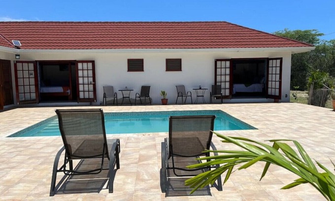 This private oceanview 1-bedroom 1-bathroom (ensuite) is the perfect beach getaway! Enjoy the stunning views of the ocean from your bedroom and shared pool. Take a leisurely stroll to the beach and spend your days soaking in the sun with sun loungers and hammocks available. Enjoy access to free wifi and all the amenities needed for the perfect vacation. Don't miss your chance to experience the beachside paradise
