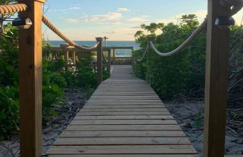 Outside, you will find a wonderful tiki hut with a picnic table for fun outdoor dining; there is a gas grill for your convenience. In addition, there is an outdoor shower convenient for when you come back from the beach to wash off the sand. Walk a few more steps and you get to the beautiful wooden walkway built through the dunes that will take you to an amazing oceanfront wood deck, to access the private beach. You can also get to the beach through an adjacent private sand pathway. Either way, it will take you less than 60 seconds to feel the sand under your feet. You will be in awe when you see the clean and quiet beach available to you!