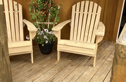 Centralized AC and heater, Adirondack chairs and rustic fire place.