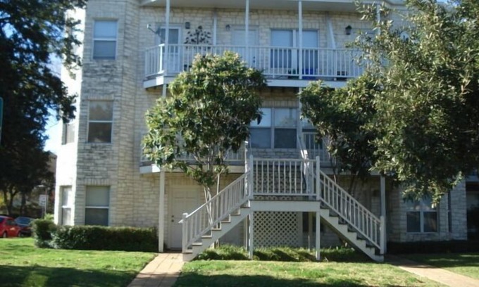 VIEWS, LOCATION, Private PARKING. Ideally located, offers easy maneuverabiity around city. Top fl unit w/front/back doors (stairs only/no elevator). Cute balcony with views of UT and City. Pristine, comfortable, cozy & tastefully furnished with wooden flooring. much like a NY pied-a-terre. Stylish clean and comfortable. Bedroom has comfortable quality qn bed w/fresh nice bedding/ linens (bed spread washed after every stay, too); tables/chairs. Living has sofa, free standing electric fireplace, side tables. Bathroom vanity is separate from toilet/tub. Fully equipped kitchen with pots/pans, dishes & all appliances, which include, stove, oven, microwave, air fryer. Coffee, pot & supplies are provided, as are cleaning supplies. TV with free unlimited wifi. Unit has a bright, open & airy feel w/windows along one side, which includes bay windows; lots of mirrors. Central AC/Heat. Assigned covered parking space; UT/City bus stops a few yards from complex; is a short walk to UT & longer stride to downtown. Safe/secure location; historical & trendy area considered to be old Austin, where legislators & professors made their homes in yrs gone by. Perfect for UT visitors/graduate students. We are gay-friendly fair-minded native Austinites intent on not misrepresenting, so pics are as true to form as we can capture. No one lives in unit on regular basis; owners live off-premise, but did live in it for 4 yrs so know the value of the accommodations. No washer/dryer in unit/complex, but there are a few in area within walking distance. Several restaurants in area, a few coffee shops (one is Starbucks) and a handful of grocery stores (one is Central Market0. Many have enjoyed their stay and expressed their delight in the experience, which is reflected in reviews. We do our utmost to make it comfortable & keep it in immaculate condition. The complex is relatively quiet, as university housing goes. Smoking is prohibited indoors and we ask that loud noises be avoided, as a courtesy to the neighbors. We ask that visitors be kept at a minimum and that anyone not registered as a guest not spend the night.