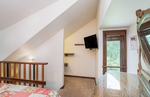 This is a cozy lofted room at the Manitou Lodge within walking distance of skiing, historic downtown, and Festivals in Town Park.