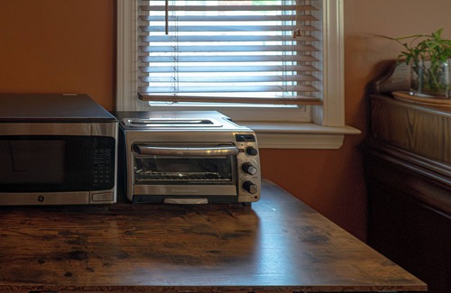 This bright and sunny room comes with a twin size bed, linens and towels provided. Desk and chair for work. Shared bathroom on 2nd level with steam shower and tub (shared with one other guest). Kitchen/dinnette and dining room are shared with other guests. Dining room and living room are off limits to guests however the table off the kitchen is available to use and shared between guests. No cooking allowed on stovetop/oven. But we do provide Instantpot, electric hot water kettle, rice cooker, microwave, toaster and Keurig coffee machine and Kcups.