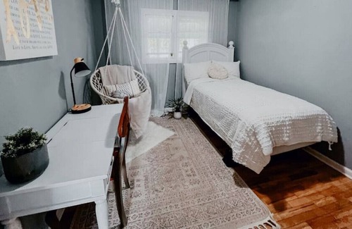 If you need more space, checkout our finished basement w/private entrance and bathroom. Close to restaurants, downtown, grocery stores, 10 min from airport.