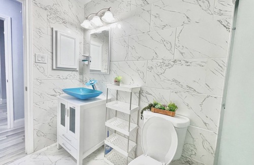 This guest suite is a private bedroom with comfy queen bed, microwave, small fridge, work desk, and high-speed wifi. The suite also has a private bathroom that's equipped with sink, shower, towels, and toiletries. A perfect all-in-one listing for home working, work trips, or student residences. The front door entrance, downstairs living room and hallway are public shared. Free parking spaces on street.
