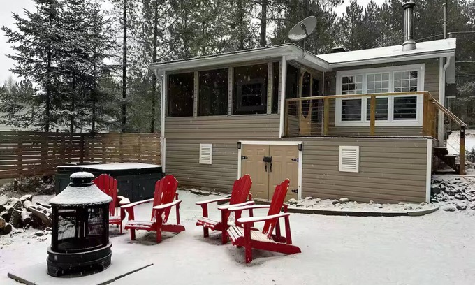 Cozy private waterfront, fireplaces, SPA for 5 people pets welcome! is located in Mauricie. Cozy private waterfront, fireplaces, SPA for 5 people pets welcome! provides accommodation, featuring Bedding/Linens, Wellness Facilities, Kitchen, among other amenities. This Ski Chalet features Bedding/Linens, Wellness Facilities, Kitchen, to make your stay a comfortable one.