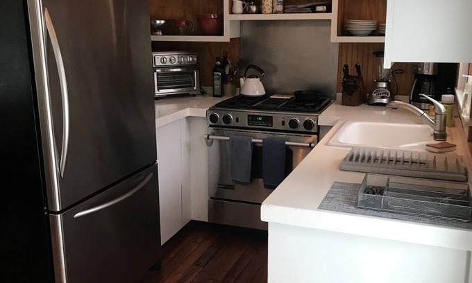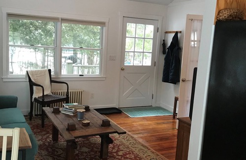 Private cottage with own parking space. Quiet neighborhood located on dead end street. Private backyard with gas grill and a patio. Hard wood floors throughout salvaged from an old barn. Cozy and quaint atmosphere.