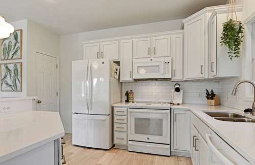 All linens and towels provided. Kitchen is fully equipped with anything you might need to whip up dinner. Brand new appliances shine along with quartz counters and beautiful new oak floors throughout the house. Central air and heat will keep you cool and comfy.