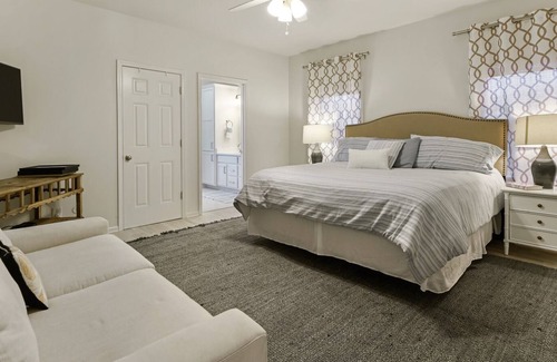 This 3 bedroom, 2 bath home has an open kitchen, dining, and living room that span the entire back of the house looking out across the lush oaks on the property. Master with king bed has large attached bath. Bunk room sleeps four, and third bedroom has a plush, queen size bed. Living room has a pull-out sofa for additional sleeping.