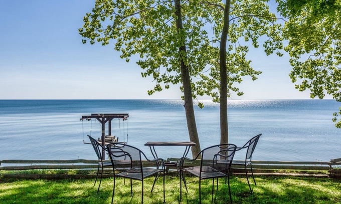 The red cottage is privately situated on 5 acres featuring shade trees, open fields and 100 feet of sandy Lake Huron frontage. This 1800 square foot year round home has spectacular views of the lake from most rooms.