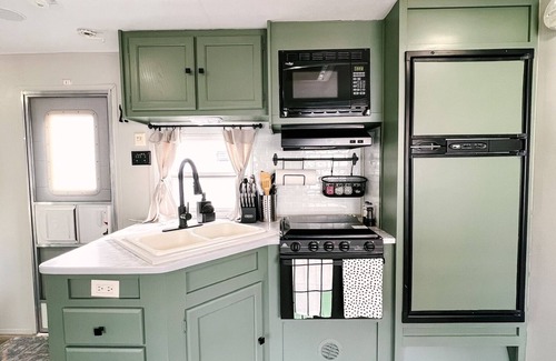 Beautifully remodeled 28ft RV located in Leeds, Utah. Sleeps 6 comfortably with queen bed, two single bunks, a pullout couch, and fold down dining table. Located in the quiet, shady Leeds RV Park that includes laundry in the clubhouse, public showers, bathrooms, and dog park. Conveniently within 10 minutes of Walmart, Costco, and Outlets. Zion National Park, Red Cliffs, Quail Creek Reservoir, Sand Hollow Reservoir, Snow Canyon State Park and many local hikes are within a 30 min drive as well!