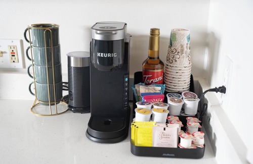 Complimentary coffee bar with snacks