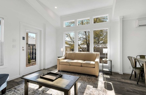 Guests will enter through the front door into the open-concept space. The welcoming living room has a SmartTV for entertainment and a comfortable sofa bed. You'll find a well-appointed kitchen ready for you to prepare meals throughout your stay.