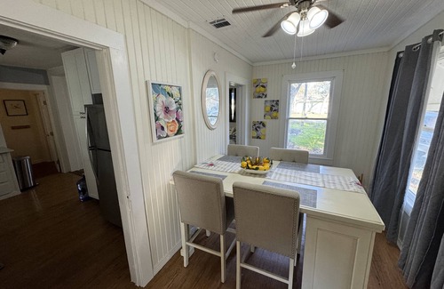 Welcome to our cozy blue house in downtown Geronimo! This charming retreat offers a snug, rustic interior for a relaxing stay. Surrounded by quaint antique shops and a nearby coffee haven, it's the perfect blend of relaxation and convenience. Immerse yourself in small-town charm while being steps away from local treasures—a serene getaway with urban amenities at your fingertips!