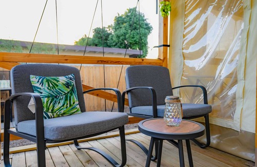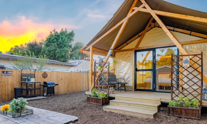 Escape to a serene retreat with our Urban Oasis Luxe Glamping setup, nestled in a private outdoor environment that blends comfort with the thrill of outdoor living. This unique accommodation features modern amenities, providing an ideal blend of relaxation and adventure.