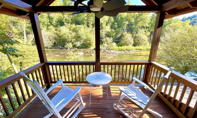 This cozy 3 bedroom, 2 bathroom cabin is the ideal home base for everything Ellijay has to offer - apple orchards, vineyards, downtown shops, hiking trails, and more! Take a deep breath of the crisp, clean air and prepare to be captivated by the breathtaking views from your riverfront oasis.