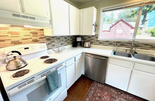 Located right along the Skykomish River at the west end of town on a giant 5-lot property, you'll enjoy the 'best view in town' right from your covered front porch or cozy interior. This is not your typical funky dark cabin in the woods, but a bright, tastefully decorated, and sparkling clean retreat - at an incredible value. We've designed it to be warm, inviting, and perfect for a weeklong getaway for a couple, two couples, or a small family.