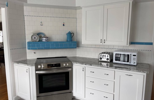 This newly remodeled and cozy 1940's bungalow features three bedrooms ( 2 queen beds and 1 twin), two bathrooms, well equipped kitchen with new countertops, cabinets & appliances. Study has a comfortable couch for reading or working on the road. Enjoy meals in the spacious dining room with a table big enough for family dinners and games. Various board and card games are included for family fun & Wifi is included to stream your favorite shows. The patio has a propane BBQ, chairs and table with umbrella, and large yard. No pets.