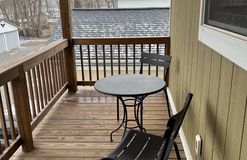 Relax at this peaceful and romantic getaway. Close to all local attractions: ski slopes, lake, restaurants, breweries, wineries, nature center, hiking parks. There is a private park within walking distance with a basketball court, horseshoe pit, swings, sandy beach and picnic tables. Rental includes free parking, microwave, toaster oven, mini-fridge, Keurig, free wi-fi, TV with Netflix and Amazon. Dock slip available at added expense. Contact owner for details on dock slip.