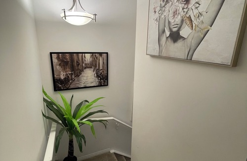 House is 2 mins away from Cityscape Square (convenience stores , restaurants , car wash etc.) bus stop, and 6 min drive to Calgary Airport. A private room in a house with access to shared areas like the bathroom, kitchen, and living room. The room includes a queen-size bed with pillows, sheets and a duvet, smart TV, night stands, lamps
