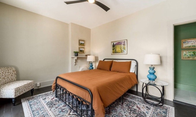 Located in the heart of downtown Somerset and within the DORA limits, the Pigfoot Inn offers charm, comfort, and undeniable curb appeal. Our welcoming front porch features classic rocking chairs—perfect for sipping your morning coffee and watching the town come to life. Step through the main entrance into a cozy foyer adorned with quirky wallpaper and a beautifully preserved wooden staircase.
