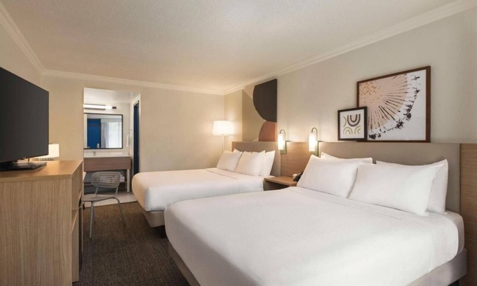 Looking for the perfect getaway just minutes from the beach? Our room offers the ultimate retreat with a free breakfast and a chance to unwind in our outdoor pool or hot tub. Pets are welcome, and you’ll love our tropically landscaped surroundings. Enjoy a complimentary beach shuttle and streaming entertainment, all in a location that keeps you close to everything. Ready for a relaxing escape? We’ve got you covered!