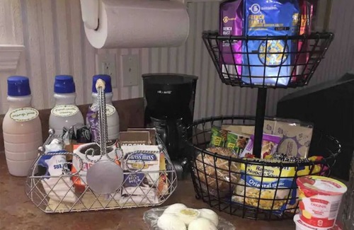 This lovely suite is just waiting for you! Traveling with a small child? A pack & play, walker, umbrella stroller and toys are also available for your use. Other items available to make your stay more enjoyable are a smart tv, DVDs & dvd machine, puzzles, and games. A picnic basket and lawn chairs are available upon request. We will do our best to accommodate your needs. Also, if you are celebrating a special occasion, contact us about adding on a flower arrangement, small cake, box of chocolates and/or a bottle of sparkling grape juice for an additional charge.