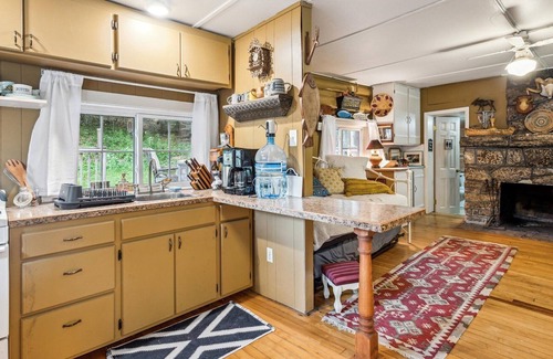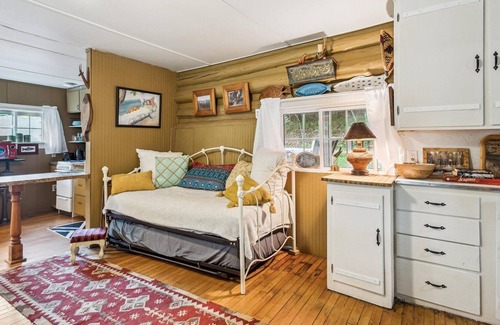 Our cozy, eclectic cabin sleeps 6 people in the northwoods about 25 minutes north of Green Bay. It is 200 meters from the public boat launch on quaint Rost Lake. Enjoy our canoe or kayaks, or bring your own boat for some excellent bass and blue gill fishing. If the water is not your happy place, enjoy a beautiful morning or evening on the expansive porch.