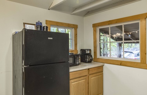 The ceilings in the bedroom/living room area are low, as this is a very small and historic cottage. The washer and dryer are located on the outside of the cottage in a storage room.