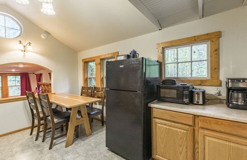 This cottage is tucked away in the forest right next to the large lodge, only 3 minute walk to town. You can catch the Baker Bus up to the mountain or drive 25 minutes to the mountain top. This cottage is cozy! Amazing for two guests a little tight for four. Work from the forest as we just upgraded to high speed internet.