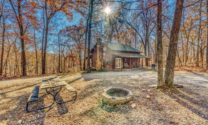 Cozy, rustic Buffalo River log cabin with indoor/outdoor firepit. Sleeps 10! | Cabin in Saint Joe